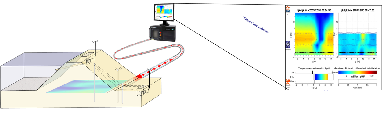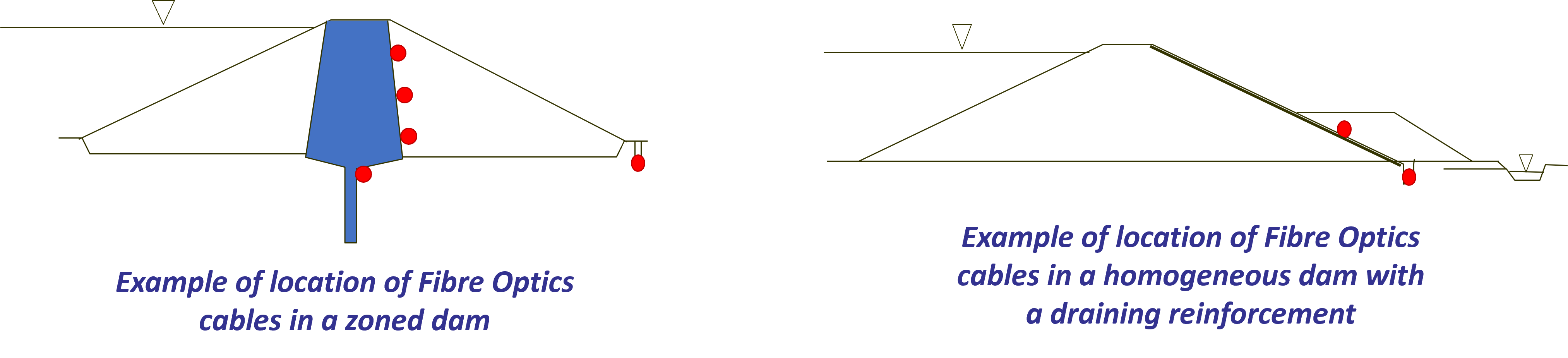 can be buried in structures or bonded to their surface. They can therefore be used, for example, to measure temperature, deformation and acoustic or seismic noise present on virtually any type of structure (dikes, dams, tunnels, bridges, roads, pipelines, high-voltage pylons, buildings, etc.).