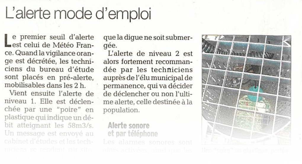 Temporary surveillance of the levees of the Sierroz at Aix-les-Bains.